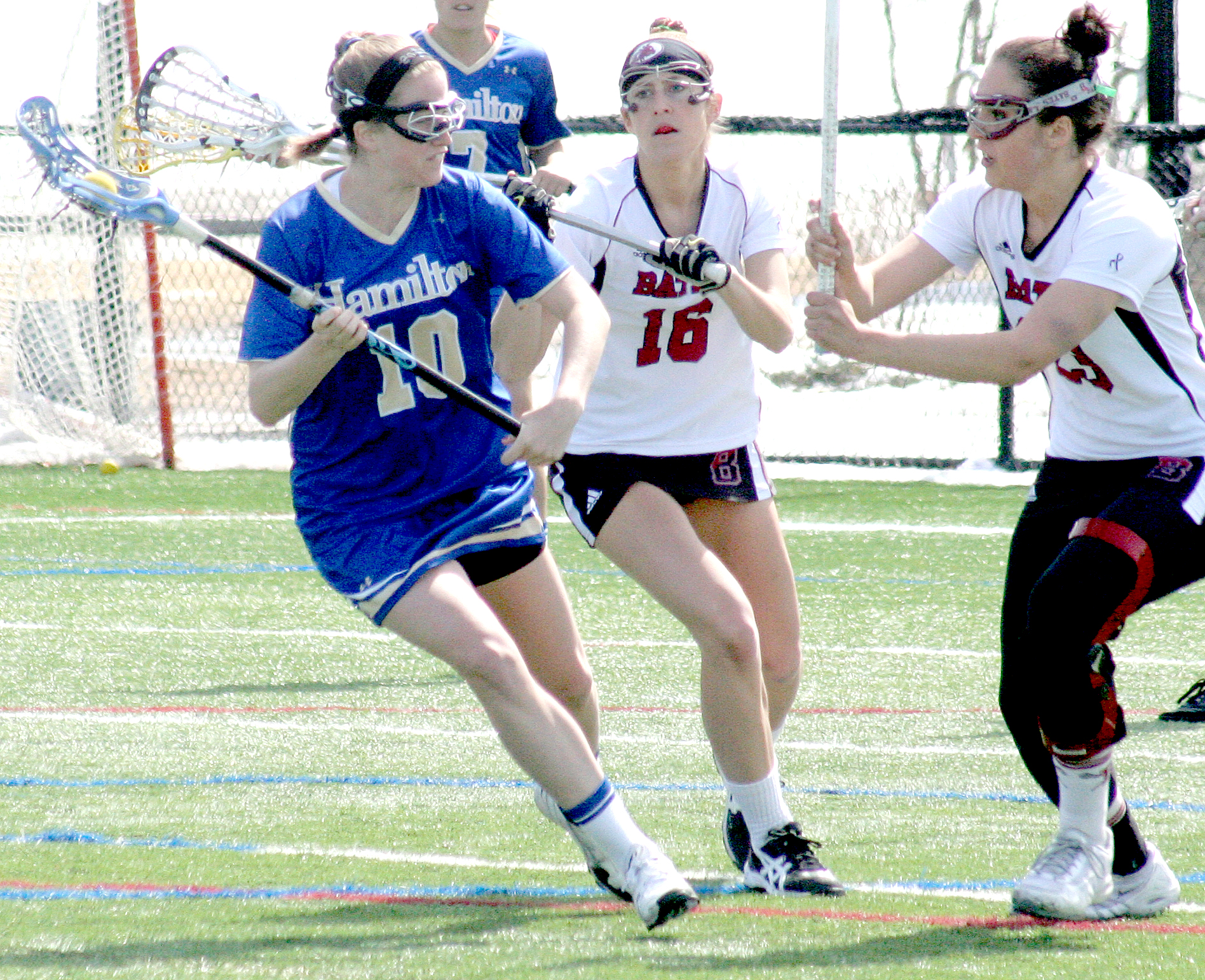 Katie D’Antonio was Hamilton’s top scorer with two goals on five shots. Bates keeper Hannah Jeffrey stopped 14 shots to earn her sixth win of the season.