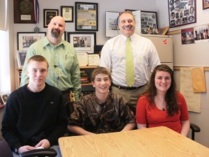 The Rotary Club of Oxford Hills announces the March Students of the Month at Oxford Hills Comprehensive High School. Students named are Brayden Bean, freshman; Nathan Chagnon, sophomore; and Allyson Gilbert, senior. The students’ names and picture have been placed on a plaque that hangs in the hallway across from the school library and they each have received an individual plaque. They were honored at a Rotary breakfast and had “lunch with the principals.” Seated from left are Chagnon, Bean and Gilbert; standing, Shawn Lambert, director of OHTS, and Ted Moccia, principal of OHCHS.