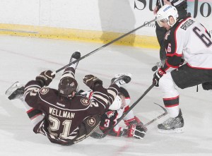It took Hershey 27 seconds to retaliate. Jeff Taffe converted on a feed from Herbert to knot the game at 1-1.