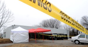 Police have erected a tent and are investigating the scene where a body was found near the corner of Sabattus Street and Old Greene Road in Lewiston on Saturday morning. Police said the victim is a man, that his death is not believed to be suspicious. A passerby discovered the body shortly before 6 a.m. Hours later, police remained at the scene, continuing to investigate.
