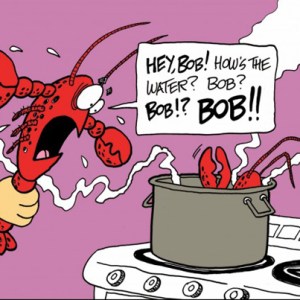 His cartoon “How’s the water, Bob?” depicting a frantic lobster headed for the stockpot, was among his most popular sketches.