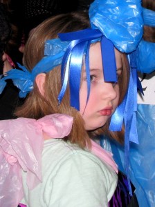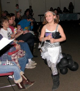 Outfits were judged on design and originality. Eight-year-old Natasha Nichols of Strong took first place in the ages 5 to 10 category and Alyssa Snydecki, 8, of Strong, and her “adorable accessory” Monica Buck, 3, also of Strong, took second place.