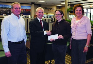 Mechanics Savings Bank recently donated $1,000 to Trinity Jubilee Center’s Sponsor a Meal project, to fund the soup kitchen, which currently serves 35,000 meals a year. At the donation were, from left, Ray Teixeira, vice president/commercial loan officer at Mechanics Savings Bank; Rick Vail, Mechanics Savings Bank president; Erin Reed, development director at Trinity Jubilee Center; and Sonia Theberge, commercial administrator/manager at Mechanics Savings Bank. Mechanics Savings Bank is a full-service community bank with branches in Auburn, Brunswick, Lewiston and Windham. Trinity Jubilee Center is located at 247 Bates St. in Lewiston.