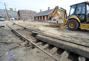 Work on the Lincoln Street Gateway Park, next to the Grand Trunk Depot, has begun. More than half a million dollars will be spent in the area that will link the downtown to Simard/Payne Memorial Park in Lewiston. Plans call for keeping the railroad tracks in place.