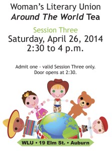 At-the-door tickets for the Around the World Tea will be available only for the Saturday, April 26, session that runs from 2:30 to 4 p.m. No additional tickets are available for the other four time slots.