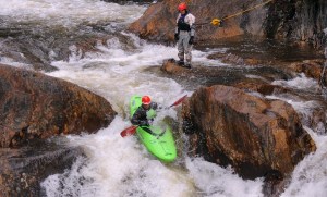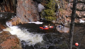The first Smalls to the Wall steep creek kayak race had 11 registered competitors, who each had two timed runs down the falls. They all managed to get through the course without major trouble, requiring no assistance from the extensive safety crew. The fastest man was Chuck Mathieu, paddling the course in 44.75 seconds, while Jane Koopman posted the women’s best time, completing the course in 57.22 seconds. Competitors and spectators said that the event was a lot of fun and they are looking forward to the 2015 Smalls to the Wall.