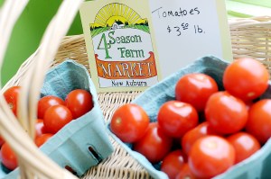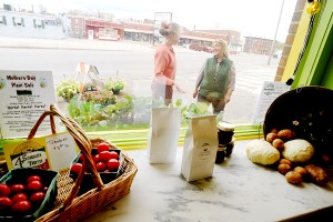 Auburn farmers Kathy Shaw and Joe Gray of Valley View Farm set up shop at the corner of Mill and Third streets, across from the Pontbriand’s Hardware building.