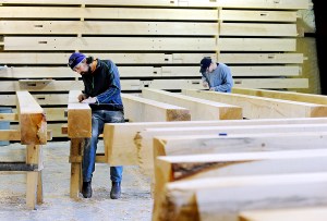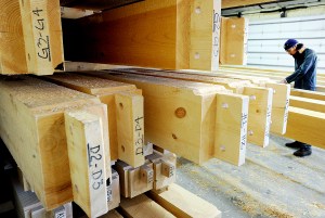 AVON — Thirty-six thick, timber frame posts are stacked against a wall in the Maine Mountain Timber Frames workshop on Route 4.