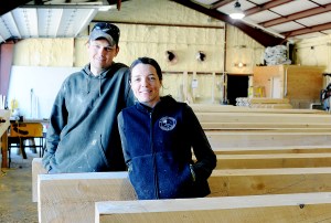 Katherine Jones-Lippy, 34, and her husband, Jence Carlson, 31, of New Vineyard, who co-own the business, are involved in every aspect of the barn project. Carlson grew up in Franklin County and attended Mt. Blue High School and the University of Maine at Farmington. Jones-Lippy grew up in Vermont and Philadelphia. The couple met doing timber frame apprenticeships in North Carolina.