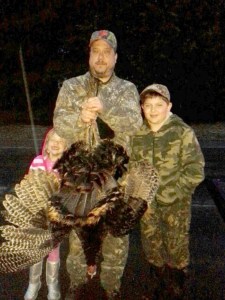 Bryson Dumais, 10, of Auburn recently bagged his first turkey — an 19-pound Tom — during Youth Day in Turner. Bryson is shown with his father, Mike Dumais and his sister Jillian.