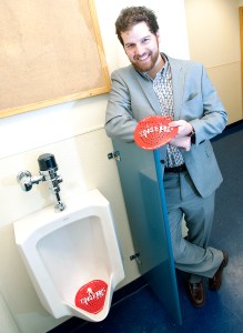 He’s not the first to come up with the idea for urinal targets — a company called Whizmark sells interactive electronic urinal targets — and Thayer said patent attorneys he’s talked with said his idea likely won’t qualify for one.