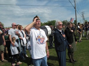 Gold Star mothers, Gray-New Gloucester middle and high schools bands and AMVETS gathered at the site of the future veterans memorial in Upper Gloucester. They were joined by other veterans, local youth teams, scouts, politicians and the New Gloucester Fire Department.