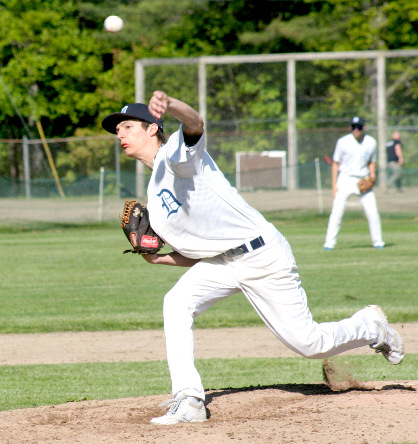 Dirigo (13-3) put at least one runner on base in each of the first four innings, but Bourget (7 IP, 2 ER, 6 H, 12 Ks, 3 BB, one intentional) buckled down each time. He fanned two while allowing a Tyler single in the first, the side after surrendering a leadoff single by Nick Hall in the second, one after Lisbon put runners at first and third in the third, and the side again around an error in the fourth