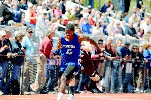 Lewiston’s middle-distance ace also defeated Idow by nearly two seconds to win the 400 in 49.6 seconds and went a mildly disappointing (for him) 1:57.57 to rule the 800.