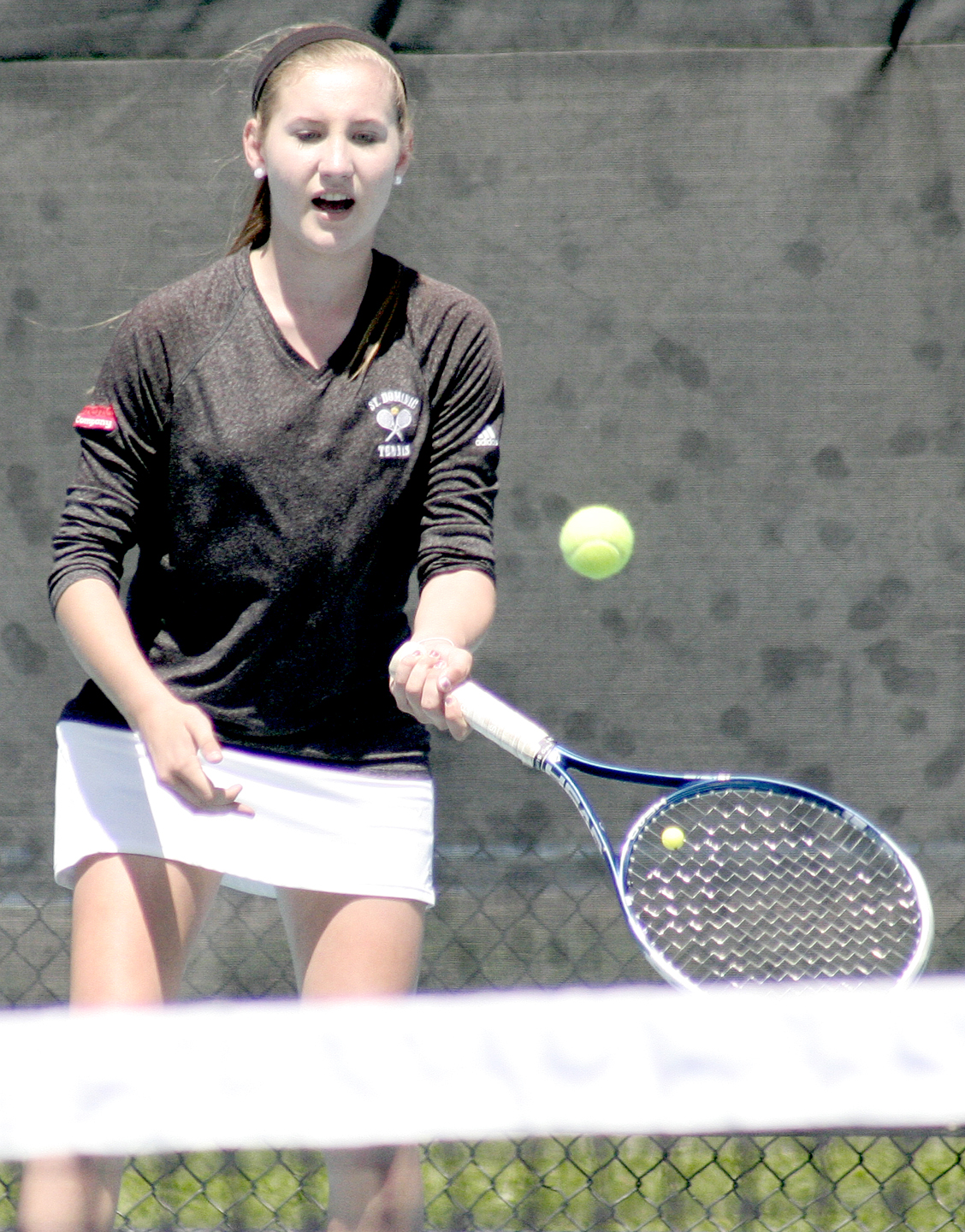 “Her work ethic, it’s helped make everyone else on the team work harder, too,” St. Dom’s coach Kevin Cullen said. “One of the practices we had a couple of weeks ago, we had a really hard day. We ran a couple of miles, we did wind sprints. After we were done, she had a break between sets, and she came over and asked if she could run another mile. That kind of conditioning paid off (Saturday). Three matches in one day is long, and that last match was a long match.”
