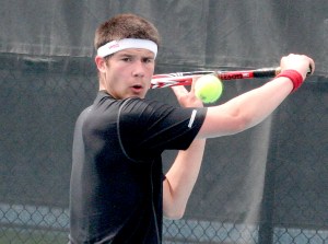 Kasey Smith wore down in the second set of his first match Friday, but still managed a win.