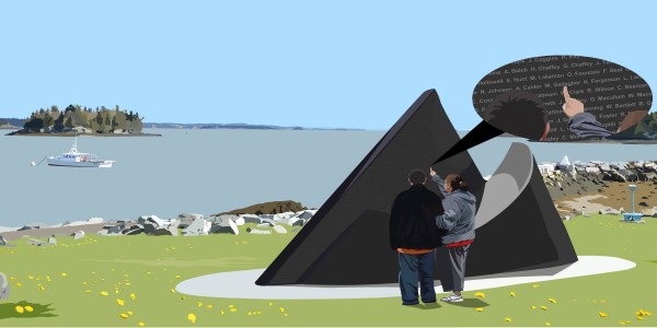 The Lost Fishermen’s Memorial Park will be located on the Lubec waterfront across from the Mulholland Point Lighthouse on Campobello Island. The yet-to-be-built park already has been designated a scenic turnaround for the Maine Scenic Byways project.