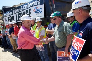 GRAY — Gov. Paul LePage said Tuesday during a campaign stop at a gravel pit that the state’s economy would be much better off if Democrats in the Legislature hadn’t spent the past two years turning away dozens of his policy initiatives.