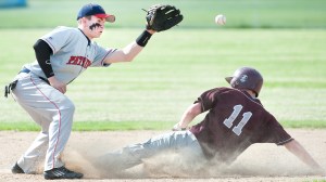 The Patriots were fortunate to get McKenna across for their only run, as he wandered too far off third on a safety squeeze attempt. But when the catcher’s throw sailed high over the third baseman’s head, he was able to trot home.