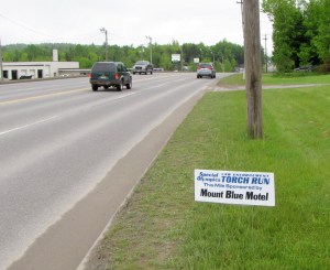 FARMINGTON — Local Special Olympians cheered Thursday as participants in the Law Enforcement Torch Run ran by them on Routes 2 and 4.