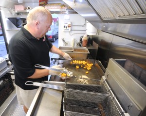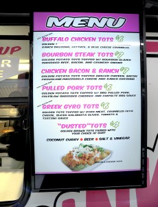 Blasting his classic rock ‘n roll playlists from an iPod — both inside and outside the truck — Smith said he wants to bring fun to his customers. “Food trucks are all about fun,” he said. And fun to Pinky D’s involves Tater Tots!