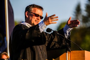 The keynote speaker was Pulitzer Prize-winning journalist Scott Allen of the Boston Globe, who gave a graduation speech at his own Oxford Hills commencement ceremony 35 years ago.