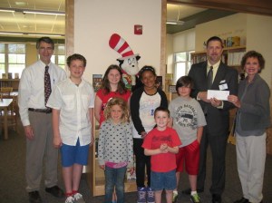 Thomas J. McMahon Elementary School in Lewiston recently received a donation from patrons of Hannaford Supermarket in Lewiston, as well as from Hannaford. From September to the end of December last year, customers received Hannaford dollars they could turn in to their school. McMahon received the most Hannaford dollars from customers, which leveraged an additional $1,000 donation from Hannaford. It is the second year in a row McMahon school has won the prize money. At the donation, store manager Randy Hoyt, second from right, presented the check to school librarian Anne Lajoie. From left, front row, are Crew Langley and Andrew Kearney; back row, Principal Tom Hood, Ben Kase, Kaitlyn Kearney, Olivia Coachman and Landon deWildt.