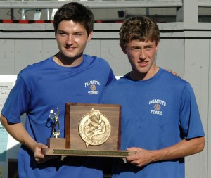 Mt. Ararat earned the match’s final point at No. 1 doubles, with senior captains Trevor Mayo and Eric Knight downing Falmouth’s Ben Aicher and Joe Lesniak, 6-3, 6-2.