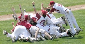 The University of Maine-bound right-hander buckled down instead, racking up his ninth and 10th strikeouts, then braced himself for the dog pile in front of the mound as the Rams celebrated their first Class A state title since 2006 with an 8-0 win over Windham at Mahaney Diamond on the campus of St. Joseph’s College Saturday.