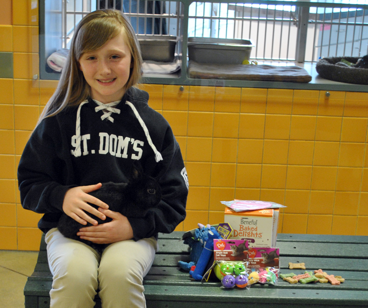 On April 17, Sarah Brown of New Gloucester presented the Greater Androscoggin Humane Society with the donations from her 11th birthday. Madison, a fifth-grade student at St. Dominic’s Academy, asked for donations for the pets in lieu of birthday gifts. Party guests generously donated $40, pet food and toys.