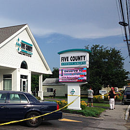 Julie Marquis, executive vice president of Five County Credit Union, said a man entered the building at 4:15 p.m., demanded money and fled.