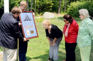 At a small ceremony with the American flag billowing in the wind, the medal was presented to two of Hanlon’s nieces, Patricia Weeks of Gorham and Cynthia Mowles of Saco after 11 years of searching and 72 years after it was first issued.