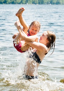 Halie Barnaby, 12, plays in the waters of Middle Range Pond in Poland with her sister, Sophia Aube, 4, and brother, Nicholas Aube, not pictured, during Monday afternoon’s hot and humid weather. “My parents used to bring me to this spot and I brought my kids. Now I bring my grandkids here,” Jane Barnaby said as she supervised her grandchildren. It’s the last chance for beach weather for a few days. The National Weather Service has showers and possible thunderstorms forecast for Tuesday and Wednesday.