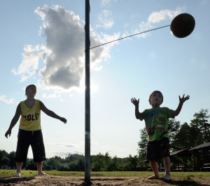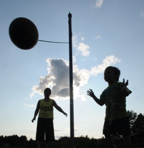 Dominic Valiente, 12, of Oxford, left, plays tetherball Friday afternoon at Pismo Beach in Oxford with Landen Herrick, 4, of West Paris. Dominic Valiente, 12, of Oxford, left, plays tetherball Friday afternoon at Pismo Beach in Oxford with Landen Herrick, 4, of West Paris.