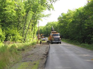 A crew also worked Tuesday at the top of Cowen Hill near and above the Gooley’s Christmas tree farm, where work was done following the July 15 storm. The plan is to increase the size of the culverts along the hill.