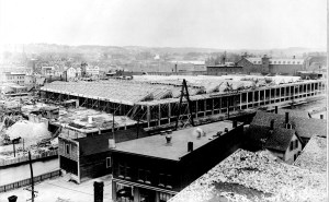 Today’s Double Take set of photos involves Bates Mill No. 5, under construction on April 23, 1913. On April 23, 2014, 101 years later, Sun Journal photographer Amber Waterman climbed on top of The Professional Building on Lisbon Street in Lewiston attempting to recreate the exact image.