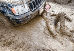 Bean is a mud enthusiast. Between mud runs, he lounged idly in the thick soup wearing a full suit, cowboy hat and boots. The mud, he said, cooled him off.