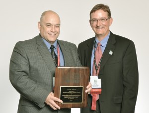 Rainbow Federal Credit Union’s board chairman, Jerry Dobransky, left, displays the first-place Dora Maxwell Social Responsibility Community Services Award presented by Luke Labbe, chairman of the Maine Credit Union League’s Social Responsibility Committee. The award was presented at the league’s annual meeting and convention in Portland recently. The awards are part of a national program coordinated by the Credit Union National Association. Rainbow Federal Credit Union has a main office in Lewiston with branches in Auburn, Mechanic Falls, Rumford and South Paris.