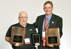 Five County Credit Union received two first-place awards and an honorable mention from the Maine Credit Union League. The awards are part of a national program coordinated by the Credit Union National Association. Robert Brewer, left, board chairman at Five County, holds two awards while Luke Labbe, chairman of the league’s social responsibility committee, holds the other award. Five County Credit Union of Bath took first place for the Dora Maxwell Social Responsibility Community Service Award; an honorable mention for the Louise Herring Philosophy In Action Member Service Award; and first place for the Desjardins Youth Financial Education Award. It has branches in Auburn, Augusta, Brunswick, Falmouth, Lewiston, Lisbon, Portland, Rockland, Scarborough, Skowhegan, Topsham, Waterville and Windham.