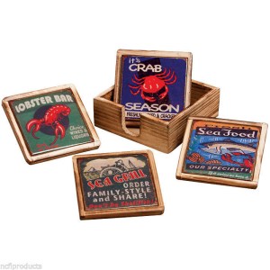 An amazing set that includes platters, snack plates, mugs and coasters in charming lobster and crab prints. Dishwasher and microwave safe. So appropriate for gubernatorial dining in Maine that it’s like Marden’s planned it.