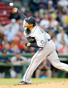 Daniel Nava led off the sixth with a grounder up the middle that bounced off of second base into shallow right-center, just enough out of the Mariners’ reach for Nava to turn it into a double. Nava went to third on a fielder’s choice, leaving the Mariners with a dilemma as David Ortiz stepped to the plate with two hits already.