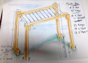 Fitness station parcels have been staked out and flagged around the downtown island. Carey presented the board with drawings of the station exercise equipment, drawn by artist Kris Howes of InkMaine.