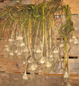 The garlic crop apparently liked the wet weather because this year’s three varieties — Music hardneck, Polish and Italian softneck — all grew bigger than usual. They are all now hanging in the garage drying. In a couple of weeks, we will remove the outer skins, then store them in a cool, dry area for use throughout the winter and into the spring. On some, I will cut a thin slice off the stalk ends of whole heads, dribble on olive oil and roast at 350 degrees for a half-hour or so, then freeze. Roasted garlic is a delicious and zesty addition to many sauces, as well as served warm from the oven (when reheated) and spread on crusty bread.