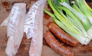 Slit the chorizo sausages down the middle and remove the casings so you’re left with just the insides. Discard casings. In a big cast-iron skillet, heat olive oil then add chopped leeks and sausage. Stir well, breaking up the chorizo with a spatula. Saute for about 15 minutes until the leeks are soft and the sausage is cooked through. Add the haddock with all the lemon juice to the leeks and chorizo. Cover pan and gently poach for 7-10 minutes. Stir well.