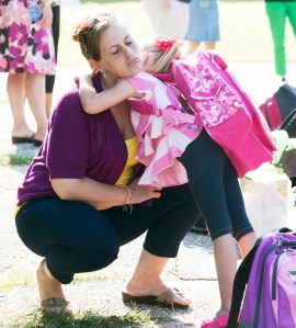 “See my backpack? I’ve got three kinds of pencils, one eraser is purple, one’s a blue eraser, and one’s a pink eraser.” The little girl was literally jumping up and down about starting kindergarten. “She’s very excited,” said her father, Chris Martel.