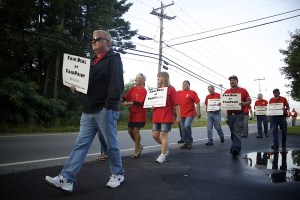 Workers picketing outside of the company’s Portland offices off Riverside Street on Thursday morning said that they would continue working until further notice from union officials, whom they’ve authorized to call a strike.