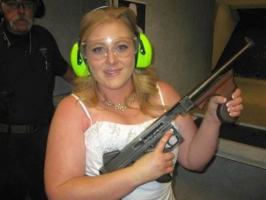 Tourists from Japan flock to ranges in Waikiki, Hawaii, and the dozen or so that have cropped up in Las Vegas offer bullet-riddled bachelor parties and literal shotgun weddings, where newly married couples can fire submachine gun rounds and pose with Uzis and ammo belts.