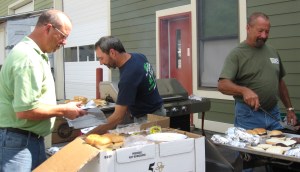 Mark Beaudoin, Jerry Pelletier and Chris Gorham, educational technicians for one of the school’s 10 vocational programs, cooked hamburgers and hot dogs on grills.