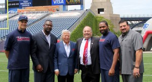Patriots Chairman and CEO Robert Kraft, Patriots quarterback Tom Brady, Patriots linebacker Jerod Mayo, Patriots and Pro Football Hall of Famer Andre Tippett and Patriots alumni and three-time Super Bowl Champion Joe Andruzzi congratulated the Myra Kraft Community MVP Award $10,000 winner William Lowenstein of Auburn from Sexual Assault Prevention and Response Services for his outstanding volunteerism. During the luncheon, the Kraft family, through the New England Patriots Charitable Foundation, awarded $200,000 in grants to 26 New England nonprofits.