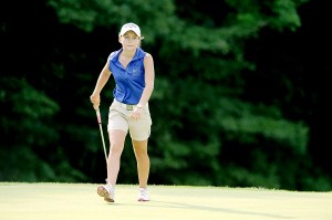 Stephanie Rodrigue, a freshman at Lewiston High School, walks across the third green during a match against Brunswick High School at Martindale Country Club in Auburn on Tuesday.